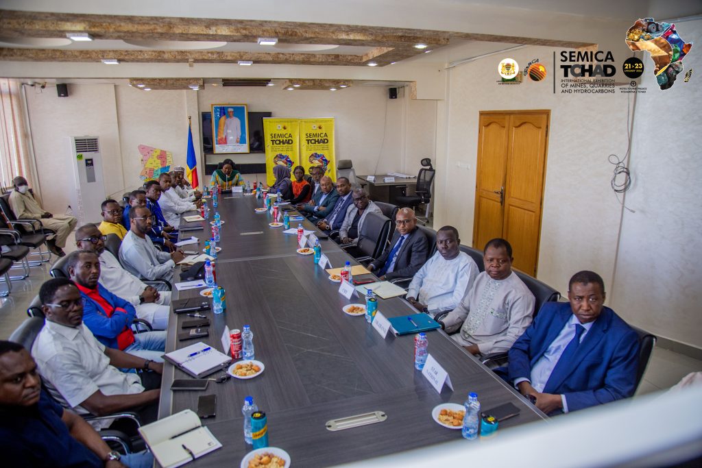 Dans le cadre des préparatifs du premier Salon International des Mines, des Carrière et des Hydrocarbures (SEMICA TCHAD 2026), la Ministre du Pétrole, des Mines et de la Géologie, 𝐌𝐦𝐞 𝐍𝐝𝐨𝐥𝐞𝐧𝐨𝐝𝐣𝐢 𝐀𝐥𝐢𝐱𝐞 𝐍𝐚𝐢̈𝐦𝐛𝐚𝐲𝐞, a rencontré les Partenaires Techniques et Financiers et les dirigeants des établissements bancaires et assurances ainsi que les opérateurs de téléphonie.
